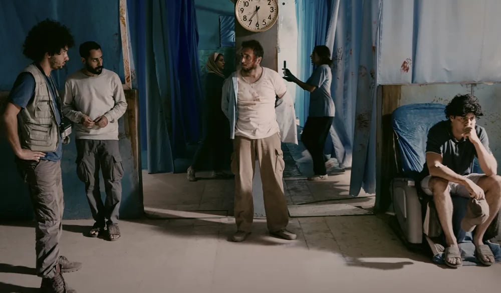 According To The variety Several interconnected vignettes make up “Chronicles From the Siege,” Abdallah Alkhatib’s harrowing, poignant, sometimes darkly hilarious dispatch from the frontlines of a violent blitz. The drama is shot with a documentarian’s eye and unfolds in the ruins of an unnamed city, but its setting is far from nebulous — not least because of the presence of a few Palestinian flags. The stories are drawn from various sources, including tales from Gaza in recent years, as well as Alkhatib’s own experiences under fire in the Yarmouk refugee camp for Palestinians in Damascus during the Syrian Civil War, which the Palestinian-Syrian filmmaker previously turned into the documentary “Little Palestine.” Shot in Algeria and Jordan, Alkhatib’s follow-up (and first dramatic feature) poses intriguing questions, through both its form and content, about the utility of cinema during genocide. Can it ever be truly useful? If “Chronicles From the Siege” is anything to go by, then at the very least, the camera has the ability to re-humanize a people constantly demeaned and murdered, by framing them outside the immediate confines of their suffering, and by giving them ordinary problems to work through, albeit under extraordinary pressures that distort their sense of routine. The situation is already dire when the story begins. In the film’s opening images, a handheld video camera captures numerous displaced Arab characters — men and women, young and old — gathered in a dilapidated town square as they scramble for scant rations tossed from the back of a truck. Alkhatib and cinematographer Talal Khoury quickly break away from this diegetic handycam (with which the film’s lens shares several aesthetic qualities, imbuing it with a pressing realism) and offer cinéma vérité glimpses at several characters who will be pushed to their breaking point in the subsequent 90 minutes. The runtime covers what appears to be several days, but it’s hard to be sure. Time seems to collapse in on itself when bombs keep dropping overhead, and the act of trying to visit a next-door neighbor becomes a matter of life or death as sniper fire rains down. Even the wall clocks visible throughout the film — glimpsed over the shoulders of characters who express the psychological fissures of this siege, or stumble across poetry about the various Nakbas — all seem to have their clock hands stuck at about 7:30, no matter the time of day. Even as time marches on for Palestine and its displaced diaspora, things stay the same. This flattening of time also ensures that each section bleeds seamlessly into the next, as we meet a troubled and hungry former video-store owner, the endearing Arafat (Nadeem Rimawi), scavenging for food and medicine in a mostly silent scene that sets the stage for the film’s visual approach. It’s low-lit, dim, and visually noisy, as though a rudimentary digital camera had been dropped into a war zone and picked up by an everyday citizen. And yet, these introductory scenes remain searingly cinematic, given Alkhatib’s intense focus on his actors’ eyes, and the differing ways they navigate desperation. It isn’t long before the digital static comes to embody the psychological fog brought on by living on a knife’s edgeArafat’s story dovetails into that of a group of young friends — three men and a woman, played by Samer Bisharat, Ahmad Kontar, Ahmed Zitouni and Saja Kilani — who take up temporary refuge inside his boarded-up store while in search of firewood, leading to a more dialogue-heavy sequence that breaks with the moroseness one might expect from recent films on Palestine. Although the quartet’s aim is survival, they end up trading universally relatable jabs about porn and masturbation, while gazing upon the many tapes and posters adoring the store walls, until they face a unique ethical dilemma: whether to use the movies to fuel a fire for warmth. Sentiment and pragmatism collide, in a hopeless reflection from Alkhatib on whether films, including the one we’re watching, can ever have material impact on survival. In keeping with this theme of persistence, we next meet a meek, bespectacled man, Walid (Wassim Fedriche), who tries to trade an old refrigerator for a single cigarette puff from a cunning smuggler, Saleh (Idir Benaibouche), revealing an entire hustle culture born of hunger and despair. Although a shorter, snappier vignette, it’s one in which Alkhatib further implicates himself by playing an unsavory thief with whom you can’t help but empathize, even as he screws people over. Throughout the film, a resistance network can be heard helping and warning each other over walkie-talkies, but when we finally meet one of its members — the fiery, gun-toting Fares (Emad Azmi) — we’re met not with a tale of action and resilience, but a surprising sex comedy about premature ejaculation. Lest this seem too raunchy for such a serious backdrop, it’s also layered with questions of transactional intimacy for the sake of sustenance, as his girlfriend Huda (Maria Zreik) sneaks her way past artillery shelling for a seeming dessert-for-sex scheme that ends up both intense and jaw-droppingly funny. Despite its occasional levity, “Chronicles From the Siege” remains firmly grounded in surrounding dangers, as the thunderous sounds of dropping bombs frequently interrupt even the laugh-out-loud comedy. All of this culminates in a stunning sequence set in a rundown hospital, where the majority of the ensemble returns, and is forced into further moral dilemmas under the threat of oblivion, in a race-against-the-clock finale shot in enrapturing long takes. Learning about each character over the course of the film not only adds individual dimensions to each scenario (and thus, broadens the characters’ horizons beyond their victimhood), but it also deepens the overarching societal fabric. This climactic collision is woven from several minor ethi